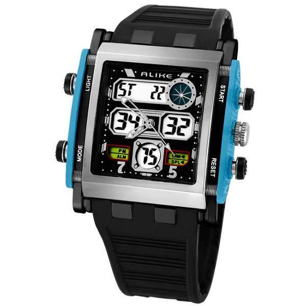 |  |  | Relógio de Quartzo Esportivo Quadrado Luz de Fundo Unisex azul | |