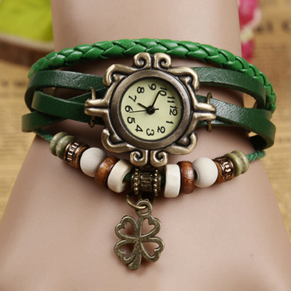 RELÓGIO FEMININO TREVO DE QUATRO FOLHAS VERDE |