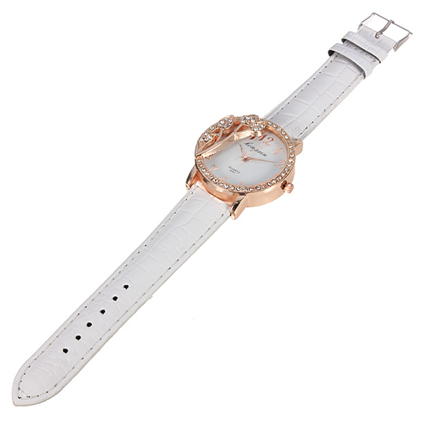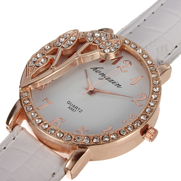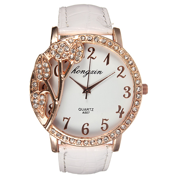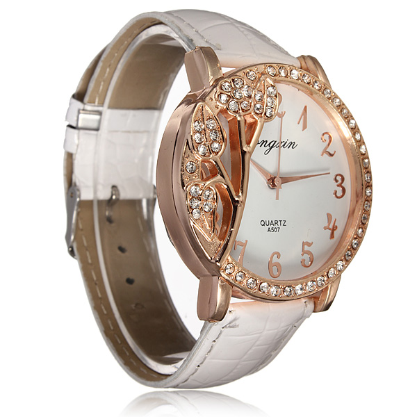Relógio de pulso Folha de cristal com pulseira de couro branco PU de quartzo