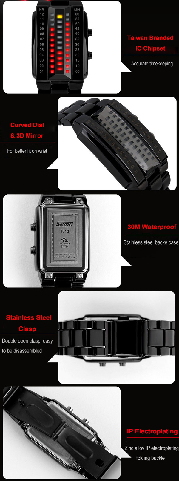 Relógio SKMEI 1013 digital de quartzo led - banda (pulseira) de Aço inoxidável impermeável