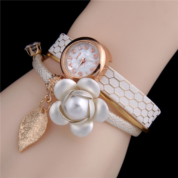 Relógio de pulso flor pingente de folha dourado cor branco |