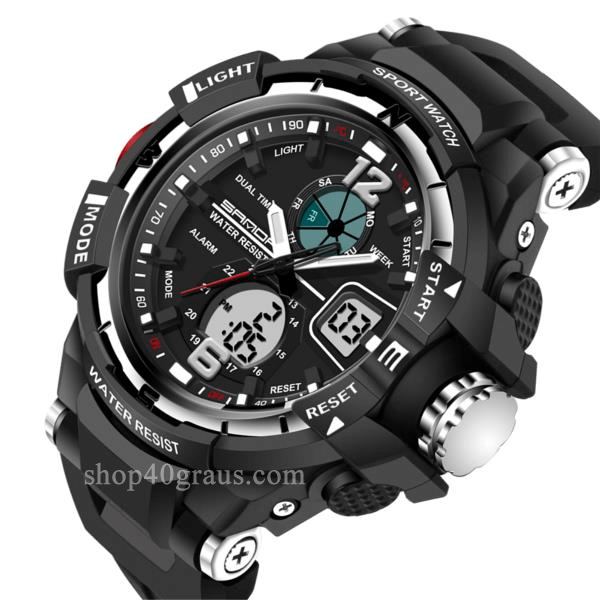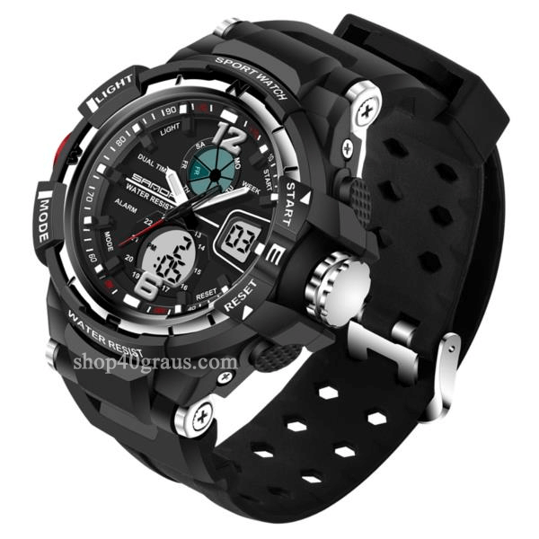 Relógio Sanda 289 Sport 2 Display 30M impermeável Prata