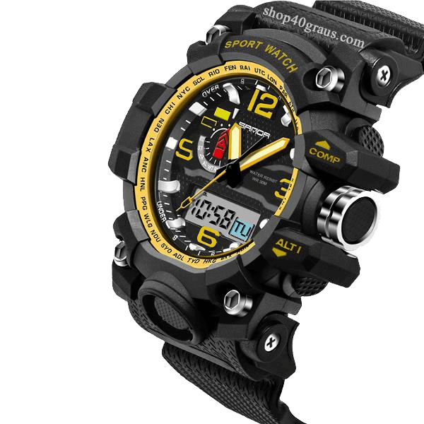 Relógio Sanda 732 Sport Led Display 30M impermeável Amarelo